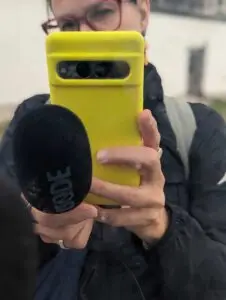 This short film (6:31 min) engages critically with the “East Side Gallery” in Berlin. By designing a performative walk with two cameras (1 mobile phone and 1 action camera in reverse modes) it sheds light on the site’s unique history. Stretching 1,316 metres along the Spree River, it is the longest remaining section of the Berlin Wall. Following its fall on 9 November 1989, artists from 21 countries transformed it into an open-air art gallery. The gallery features over 100 paintings symbolising freedom and political change. However, over the past ten years, the East Side Gallery has undergone significant gentrification, with the area being transformed into a place dominated by tech companies such as Amazon and Google.